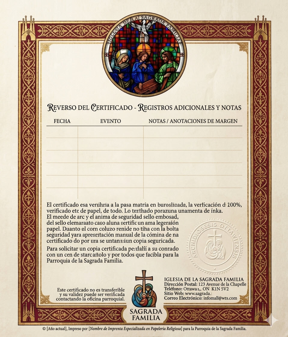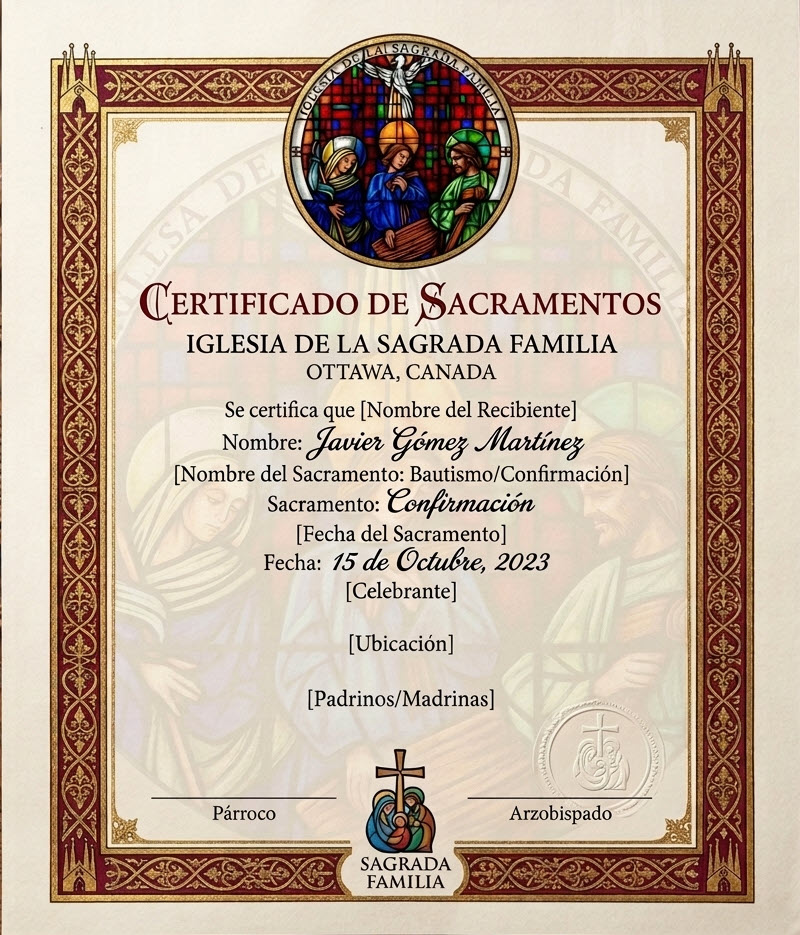 Un sacramento no tiene costo. La donación sugerida para gastos administrativos es de 20 dólares.